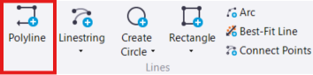 Specify which section of the mine you are analyzing by creating a polyline that defines the section of the mine you want to report on. Select “Polyline” from the Lines section under the CAD tab.
