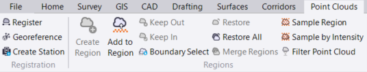 Next, click on the “Point Clouds” tab on the top ribbon and notice both the “Create Region” and “Add to Region” tools.