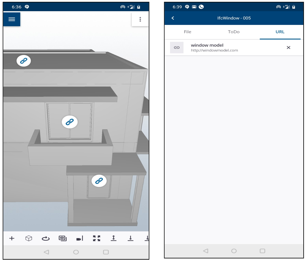 Object Links in the new 3D Viewer: You can now add and view object links for 3D models loaded. When tapping the link, a list of all attachments will be shown. The following options are available for adding links: Device Camera, Gallery, Data Explorer, Todo and URL.