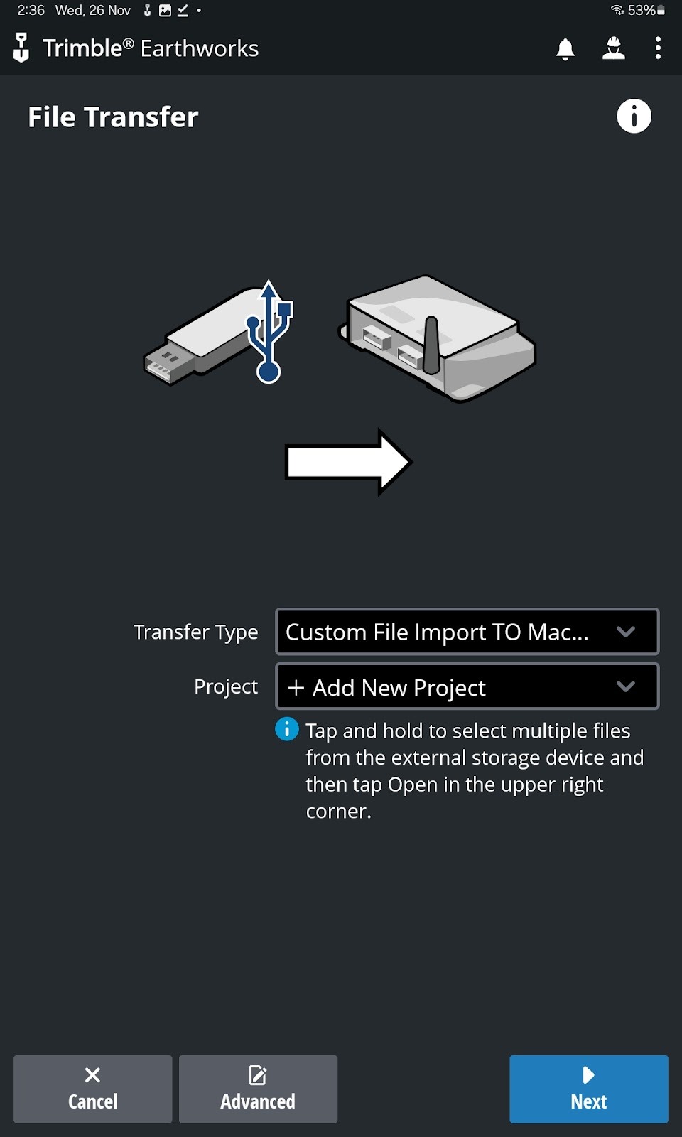 This guide provides step-by-step instructions for successfully using a Bring Your Own Device (BYOD) Android tablet with a 3D Earthworks machine equipped with the add-on Trimble Marine Construction system and no TD display.