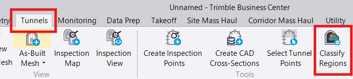 Click on the “Tunnels” tab on the top ribbon and click “Classify Regions” in the Tools group.