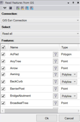 Navigate to GIS > Connection > Read Features from GIS and select your newly created Esri connection.