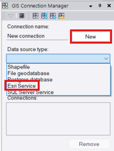 Navigate to GIS > Connection > GIS Connection Manager and click New.