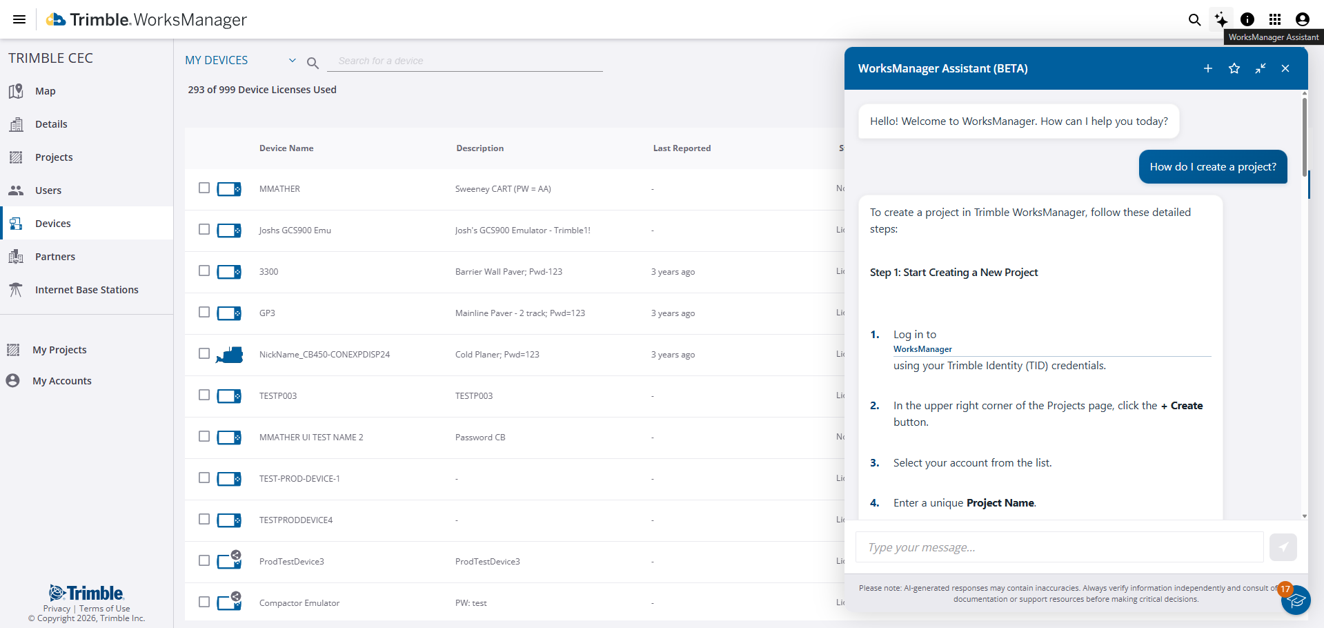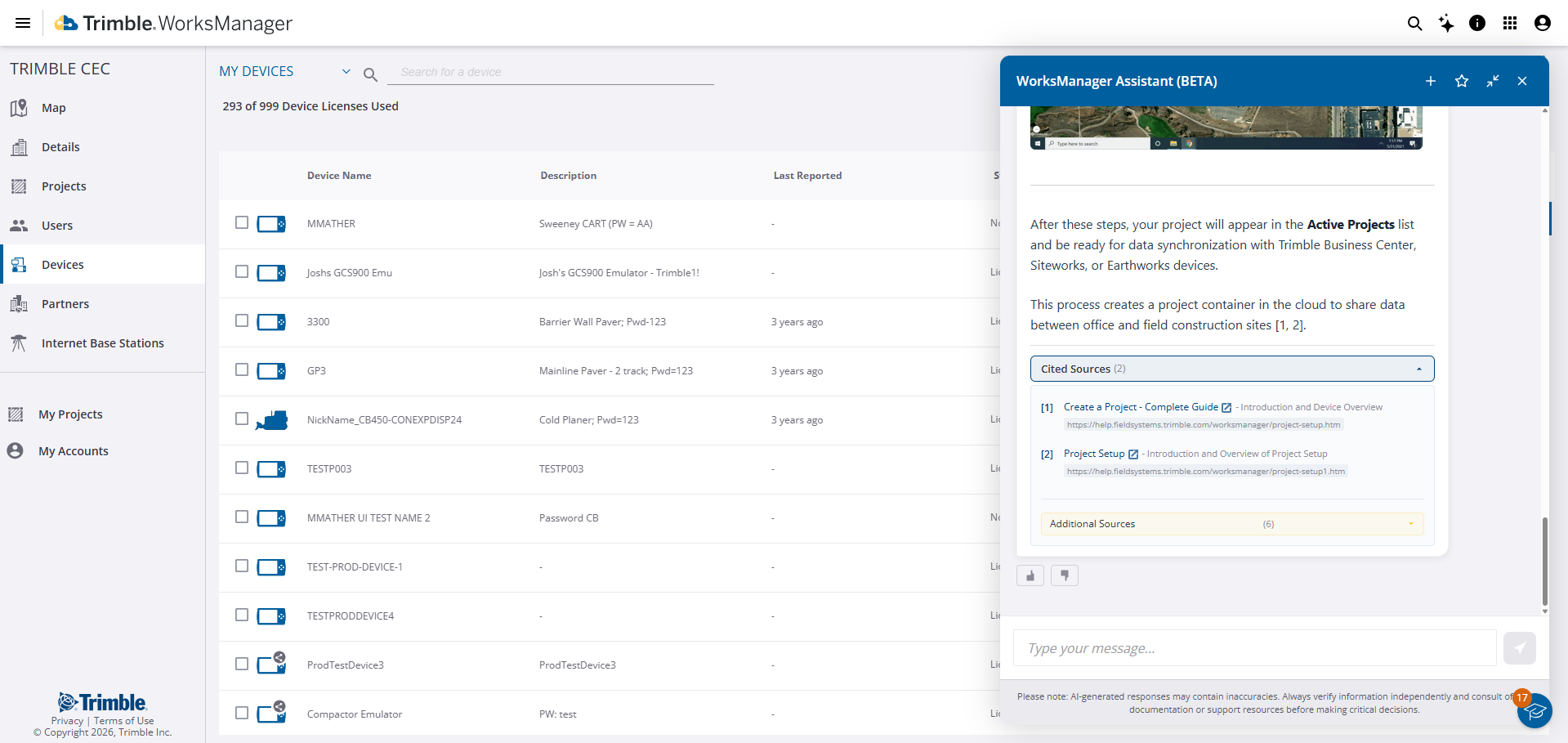 To ensure accuracy, the assistant is trained exclusively on official Trimble WorksManager documentation. When you ask a question, the WorksManager Assistant scans our verified help articles and provides a concise summary of the answer.