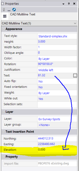 Please note that this file has some areas where the "nearest" text is not the correct one. You will need to check the points elevation in these areas. If needed, just use properties on the points and then select the correct text object for the elevation.