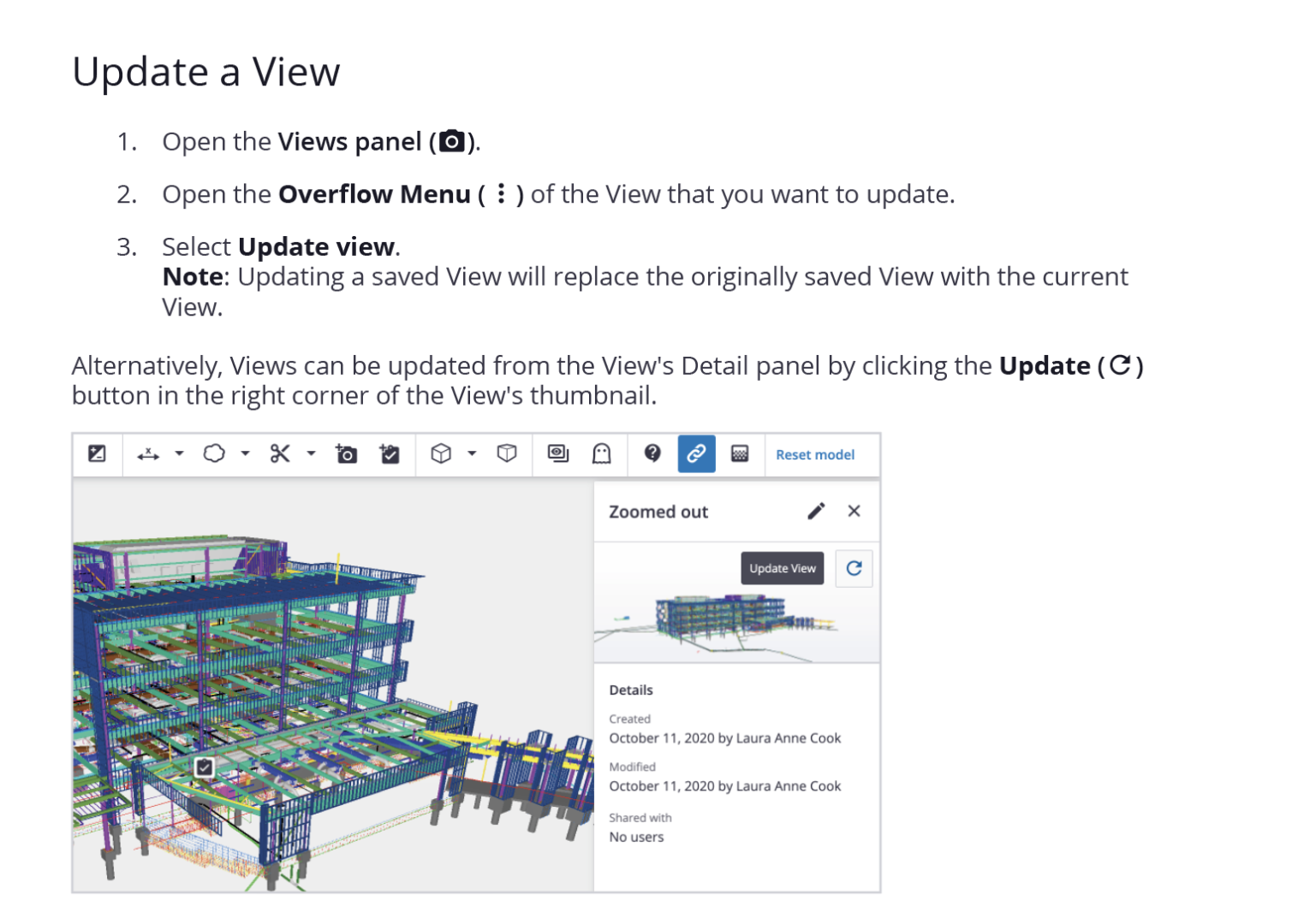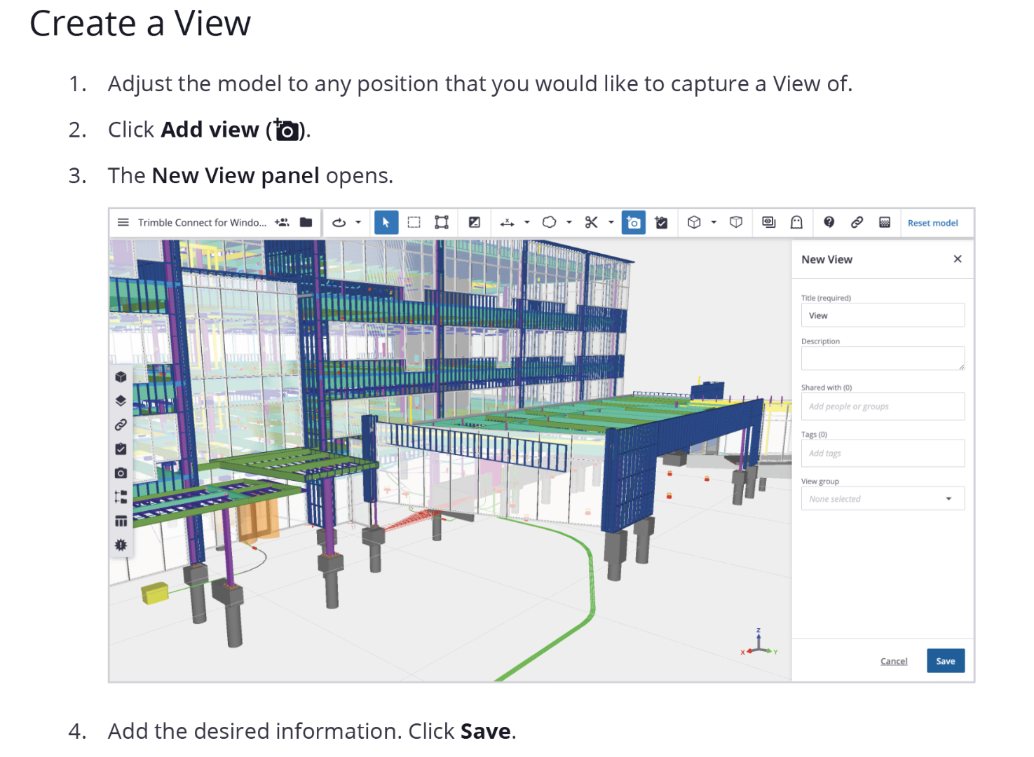 I have received the TEKAL model (in ifczip format) file of a steel structure from the fabricator. In order to monitor the fabrication process I have changed the colors of the elements that have already fabricated and are ready for shipment. I don't know how to keep the changes I have made and because of that I can't share the file with my collogues and supervisors, therefore I just take screenshots and share these files.