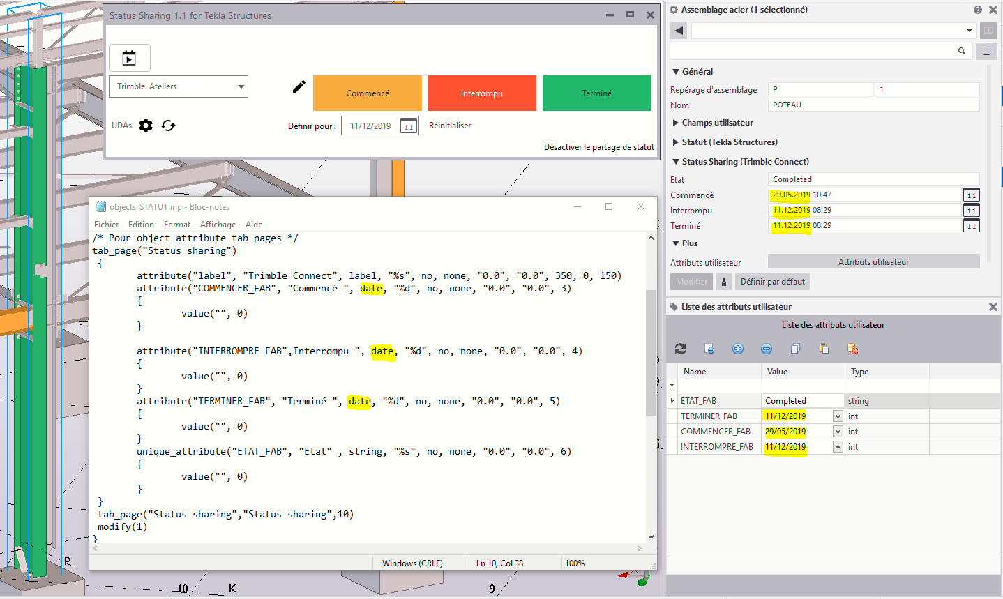 Status Sharing UDAs must be linked with UDAs in Tekla Structures.