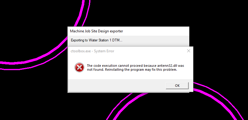Had the same issue. uninstalled and ran the clean up. Tried exporting machine file and have the same message as above. Found the antenn32.dll in the following locations below