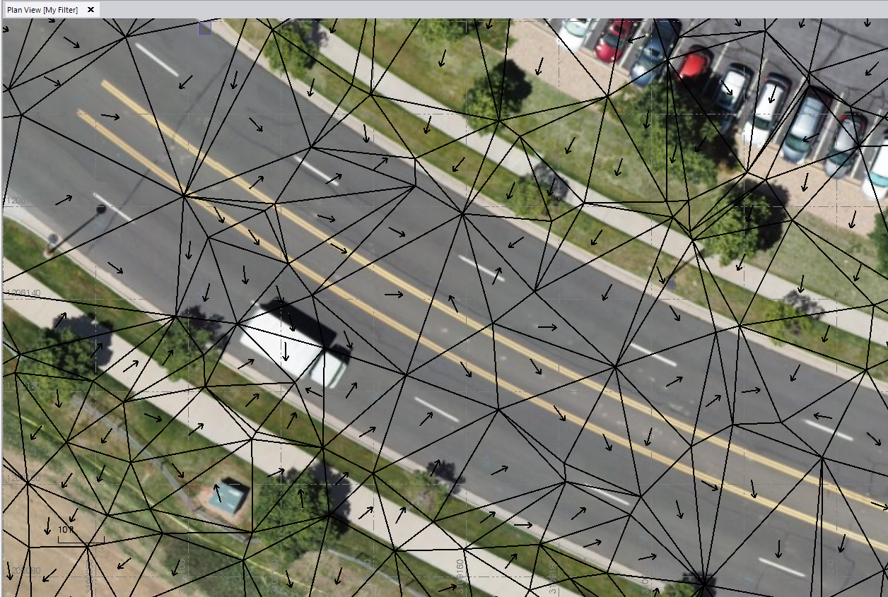 In the above image I have a Georeferenced Image with 0% transparency, I have my highlight line weight set to 2 and highlight color set to Black and I am using a White background with a slope Arrow length of 4 and for display purposes this seems to work OK. If I want to have this showing like this - all I have to do is select the surface - however if I am trying to create output deliverables this will not work a it is only a selection display method - but it may help.