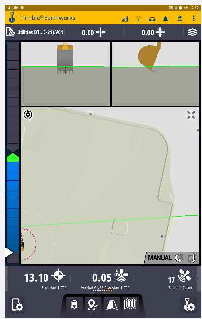 Now you have a Surface of the Elevation you want the machine to cut (provided by the surface) and you have the Line of the Pipe / Trench for Guidance to the operator.
