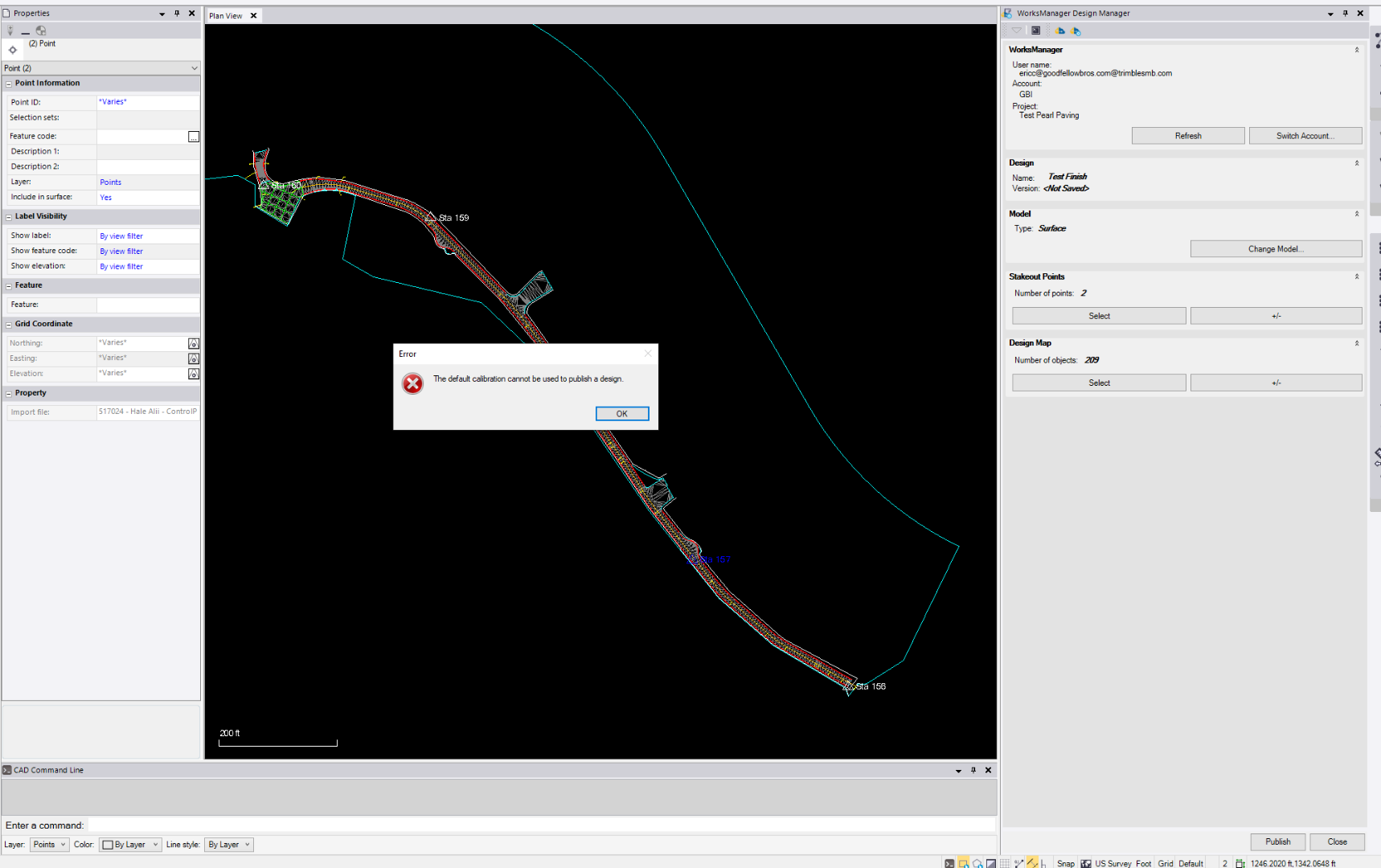 Right now you need to have calibration in order to publish your design to WM. We tried it with one of Trimble guy and SITECH and you can't publish a design without a dc/cal. below