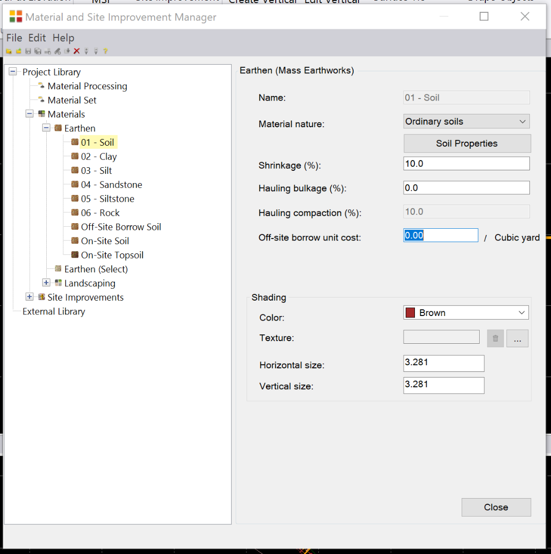 2) Shrinkage % - this is the Shrinkage of the material from its In Situ State to its compacted Fill State - i.e. if it shrinks by 7% then you would enter 7% (that is equivalent to 93% of original