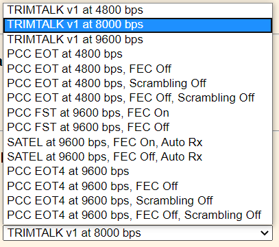 List of options you can choose on the R10.
