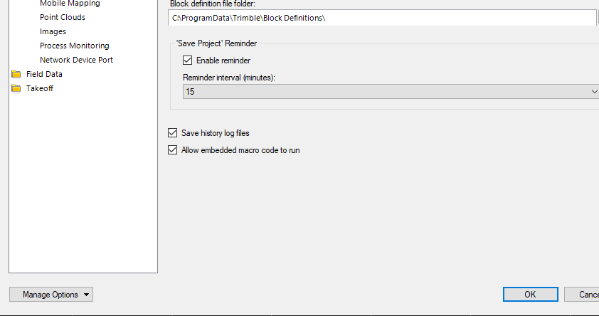 Use project management options to set a timed reminder that prompts you to save your project. When enabled, the Save Reminder dialog appears at an interval you specify.