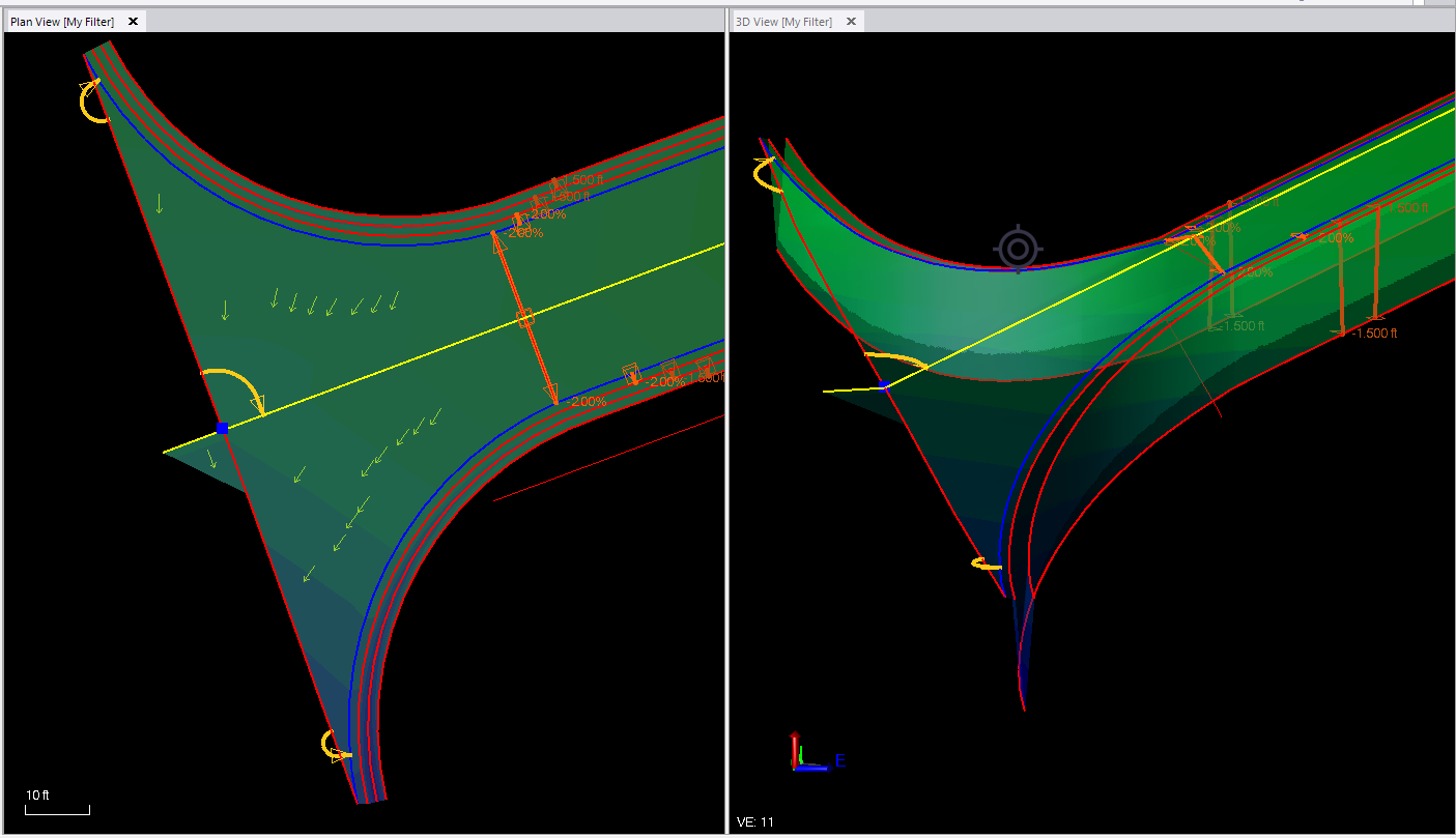 Vertical Design won't compute a line with the cross slope rule. I can elevate the line using the connector rule but when I try to set a cross slope from the Center Line to the Edge of Pave it wont compute. Even if I delete the connector rule it still wont compute the Edge of Pave line with a -2% slope off of Center Line.