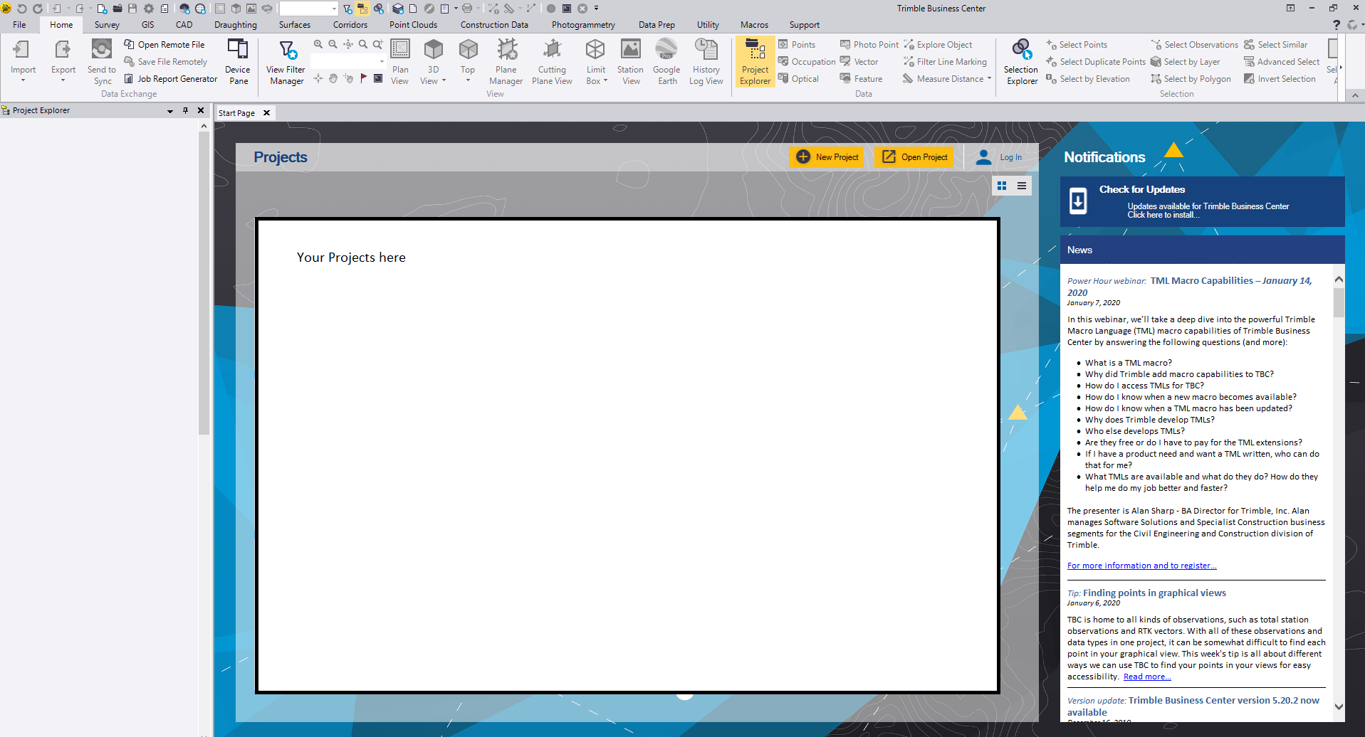 My suggestion would be open up TBC without a project, just run the base program to get the spash screen as below