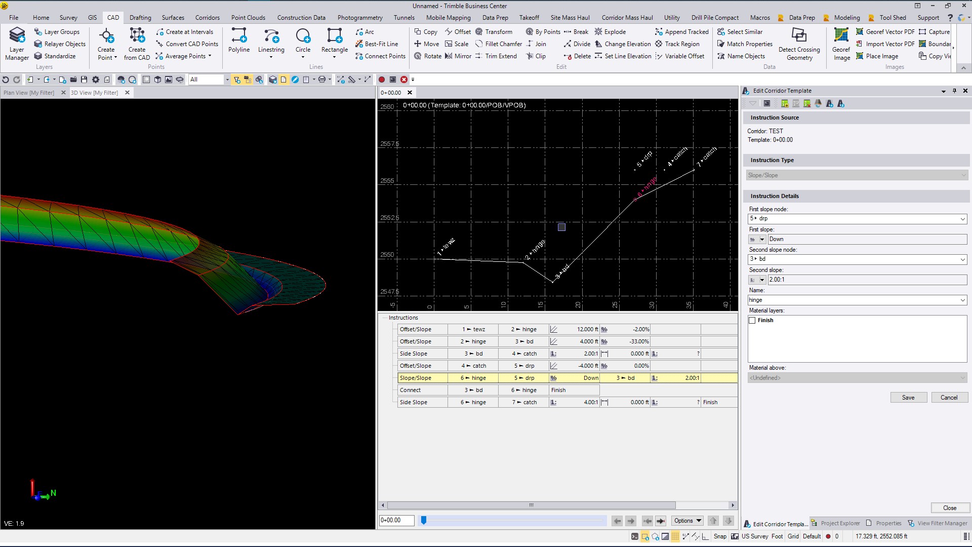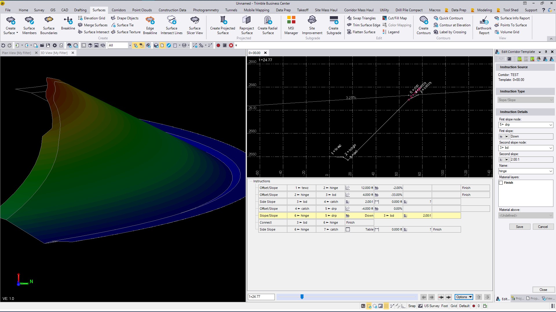 Because the design does not give you the design criteria to build the arc elements from, this is the best that you have to go on. The file I sent you which has the flipped sections and Finished Grade Model may help you somehow I hope.