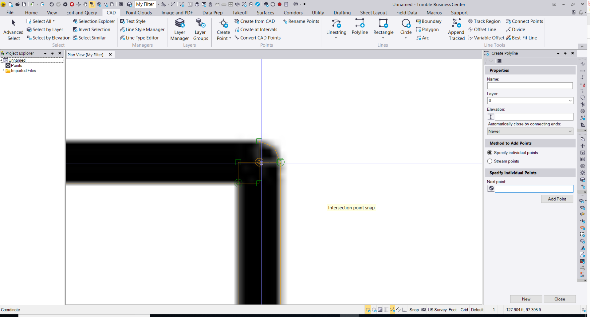 The lines are however relatively easy to trace over in this case because at all the corners there is an Intersection Snap that you can use to find the center of the intersecting lines as shown below.