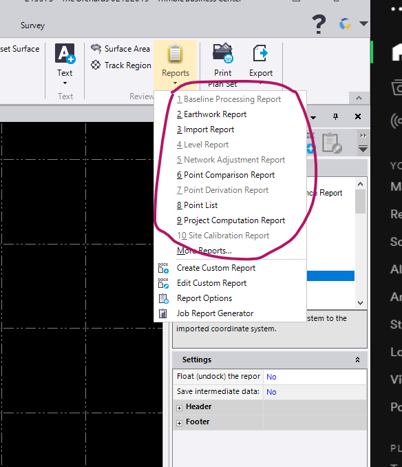 The report list is controls by a list defined in the application config file. In the install folder (usually C:\Program Files\Trimble\Trimble Business Center), there is a file named TrimbleBusinessCenter.exe.config. This file holds the application configuration that is normally not modified by the user. If you edit this file, (it's just an XML file) you can change the number of reports displayed in the report pull-down list and the default reports. The part of the file you need to edit looks like this.