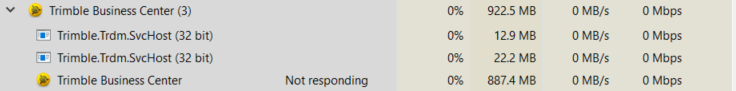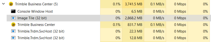 During the import of a GeoTIFF of the same site (840 MB - 24107x36666 pixel) that task "Image Tile" doesn't use as much memory, only about 120 MB, and disappears at some stage. The import summary shows one error "1. Global (degree) units could not be used; Grid (metre) units were used instead."