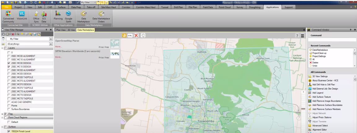 5) At the base of the Plan View Screen click on the icon in the bank of toggle switches that looks like a map. This will turn on the Map View and display either the Satellite Imagery or a Street Map. If it is showing the wrong one then go to the Project Explorer, right at the top where it shows either Unnamed (for an unsaved project) or the project Name for a saved project - Right click on the project name and select the alternate option in Mapview settings - you can select Digital Globe Imagery or Trimble Mapview (street map) options.