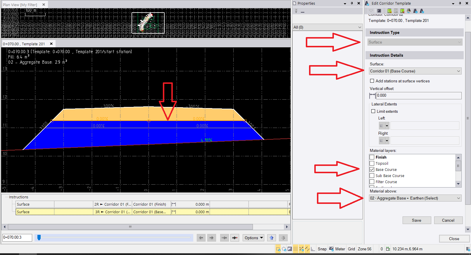 (I referenced 4 surfaces EXISTING GROUND, FINISHED, BASE, SUBBASE):