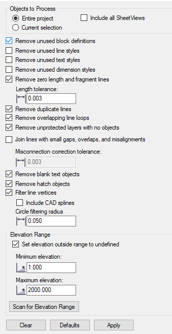 I did just run the project cleanup on my main file, and re ran the EW report with success, thank you for the help. I wonder what it is in the imported files that causes this? Must be those UCS arcs that come in way off in elevation but tie into the surface fine.