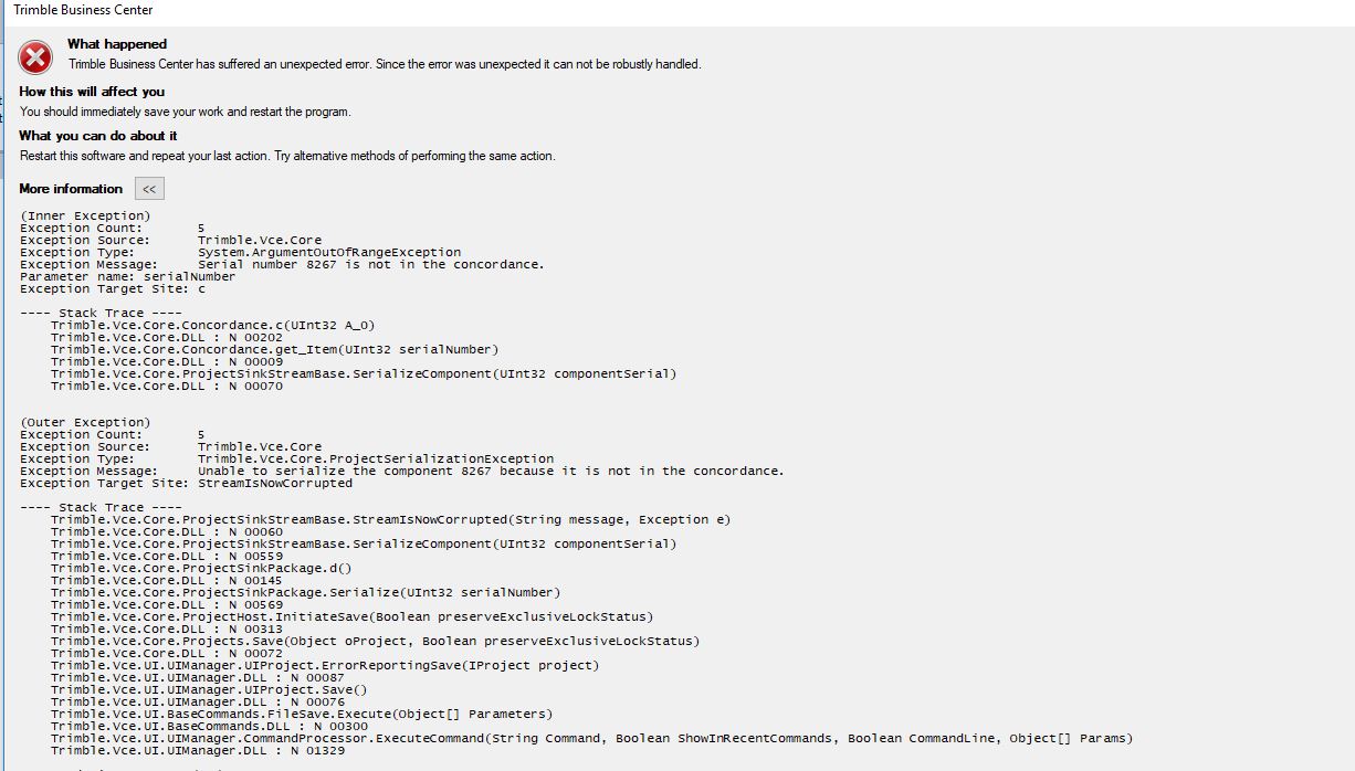 "Sounds like an object is holding onto a serial number of a deleted object. You should be able to select some of the data and export that to VCL. If you select the object that has the issue, the VCE export will fail."
