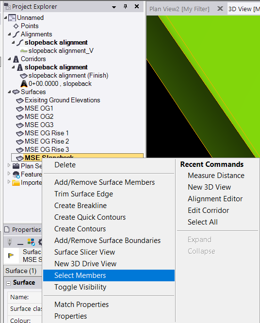 Turn on all layers. Right-Click the surface in the project Explorer and "Select Members".
