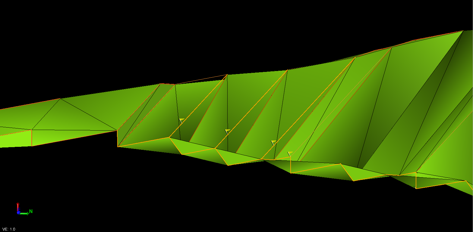 Vertical Step in breakline, two nodes with same coordinate but different elevation.