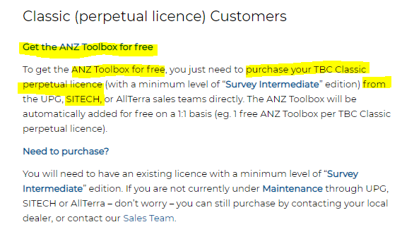 So, only if you buy TBC through SITECH Australia they get their cut and are willing to give you the Toolbox for free. Every other SITECH customer needs pay extra, like buying from any other third party.