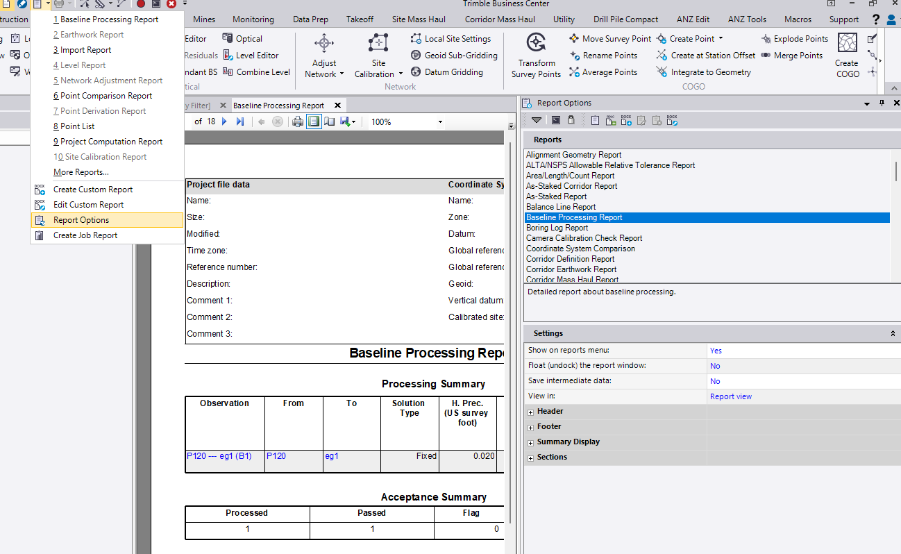 Just ran a control network with 240 vectors and the full report coming off the template is almost 2800 pages, when I all really care to review & archive at this point is the first 10 of the summary displaying the solution types & precisions. Generating the report & exporting it afterwards is quite taxing on my computer and often causes TBC to crash out.