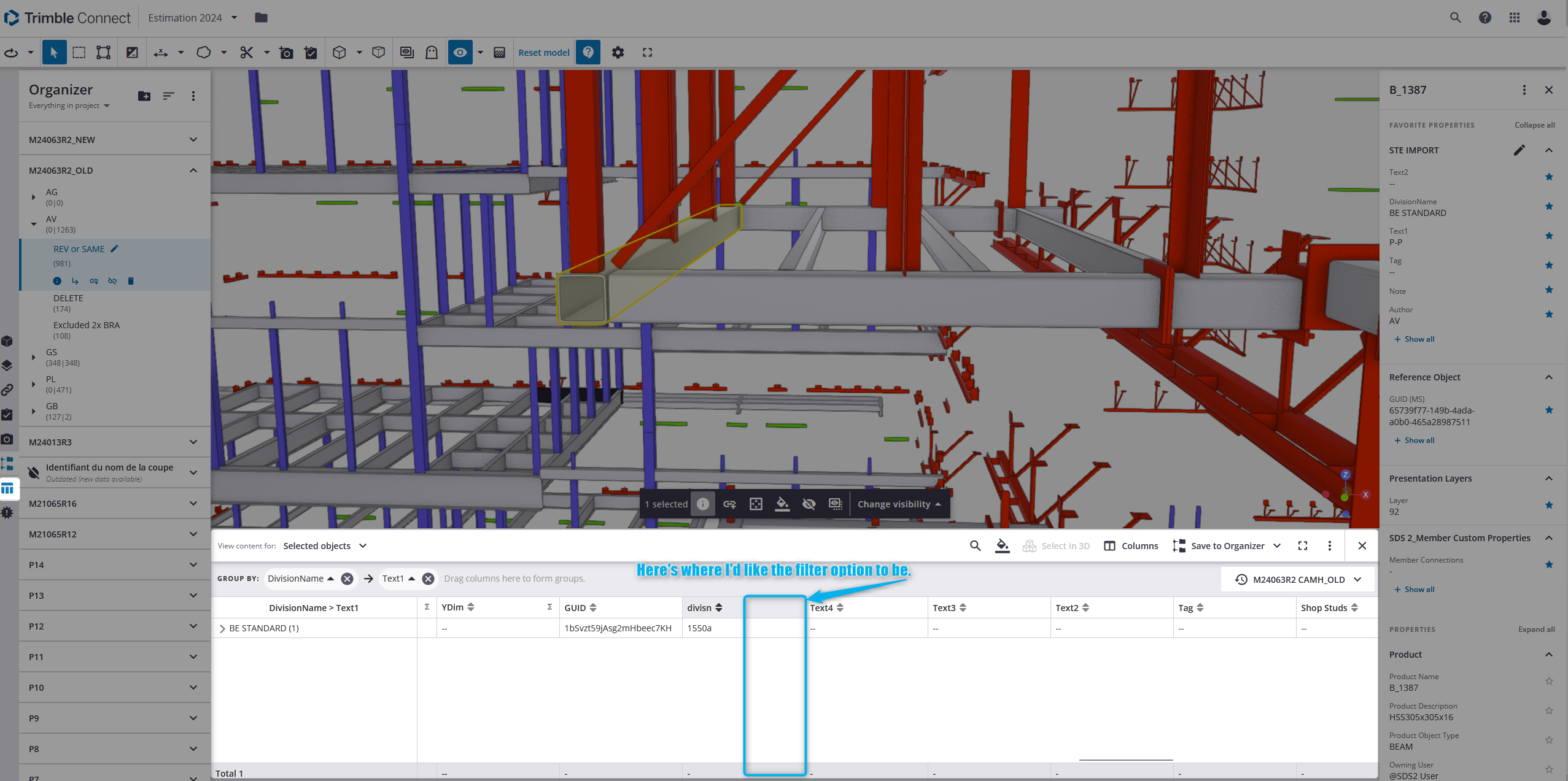My name is Alex and I work in the Estimating Department at Firm. I'm writing to request a new feature for the Data Table tool within Trimble Connect.