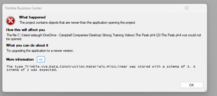 I just tried to open a customers VCE that was saved in version 5.2 in my 5.1 version TBC. I used the CTRL-SHIFT drag and drop workaround, but it's working this time. I'm getting an error I've never seen before. Has the CTRL-SHIFT drag and drop work around been removed, or is this a problem with this specific VCE?