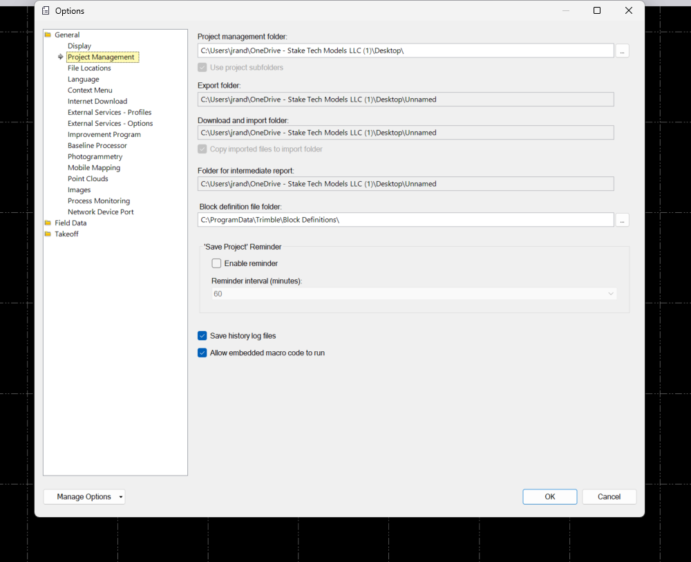 Has the TBC project been saved already? What's the setting for project management folder? Is that one a network or cloud storage folder?