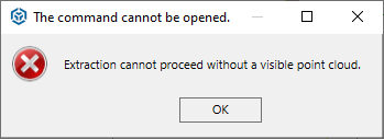 It looks like your point cloud data has been switch off in the View Filter Manager. Please ensure you can see your point cloud data in TBC and then try the command again. You can use aerial photogrammetry point cloud for this command.