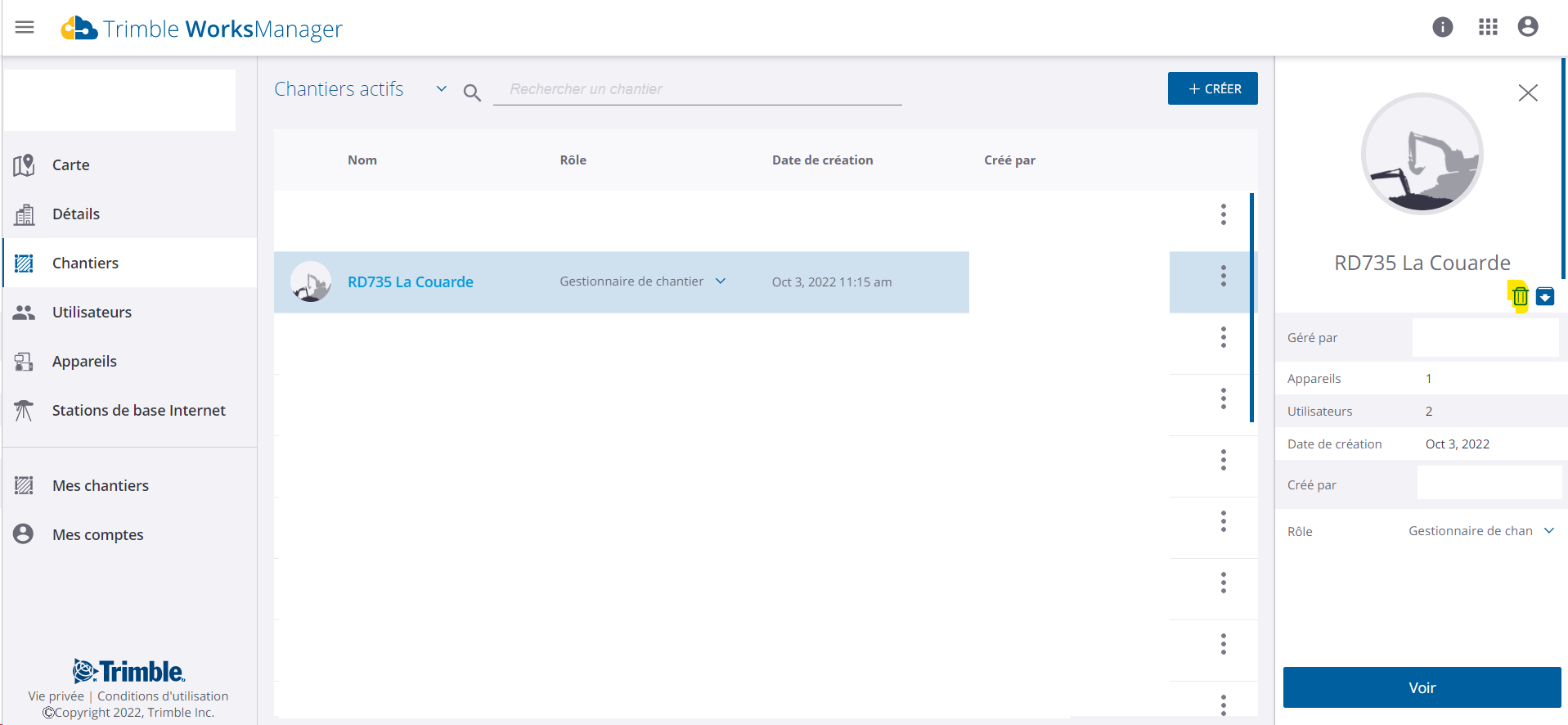 You access "My Accounts" on the left side of the window then by selecting the concerned account, under the tab "Worksites" still on the left side, you will have the possibility to delete your worksites by selecting them one by one in the list then "Trash":