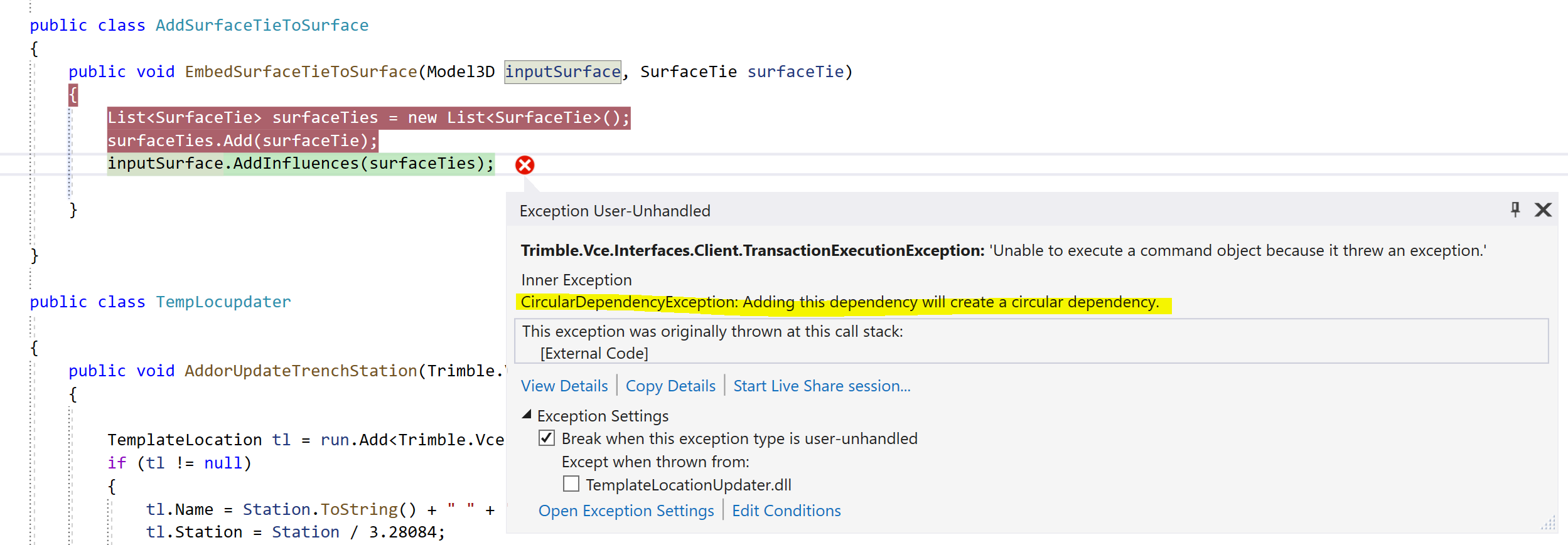 ST =wv.Add(clr.GetClrType(SurfaceTie)) ST.Name='mySurfaceTie' ST.TieDirection=Side.Right ST.CornerMethod=CornerRoundingMethod.Sharp ST.CutSlope=float(self.cutSlope_TexBox.Text) ST.FillSlope=float(self.fillSlope_TexBox.Text) ST.StationDelta=float(self.StationingDelta_TextBox.Text) ST.BegStation=float(self.startStation_TextBox.Text) ST.EndStation=float(self.EndStation_TextBox.Text) ST.ReferenceGeometrySerial=l.SerialNumber ST.SurfaceSerial=selectedSurface.SerialNumber