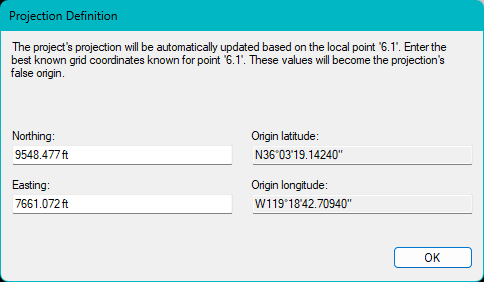 a.      First, import your control into TBC, make sure the false northing and easting (Figure 1) match the point that the RTK Base station was set up on or over to get the latitude and longitude. (Figure 2)