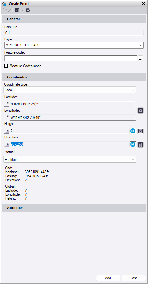 a.     Now, create a point in TBC, add to the control point used for the RTK base .1. It will look like this 6.1 (Figure 3). Then change the "Coordinate Type" to "Local" and type in the latitude and longitude of the RTK base. Then click add. A window will pop up (Figure 4). Make sure it matches the northing and easting and latitude and longitude of the RTK base and point.