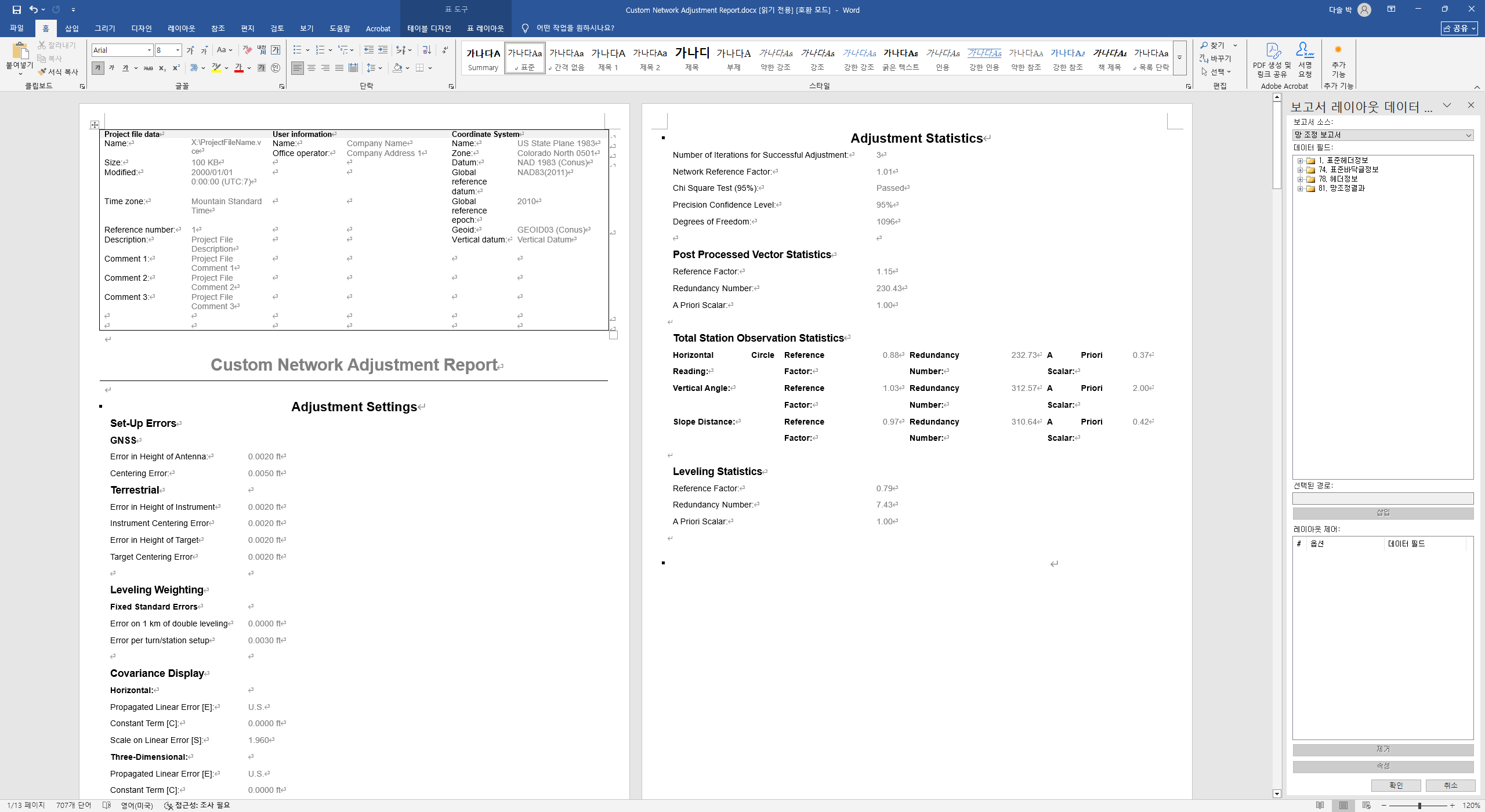 The network adjustment report only outputs in HTML format, so I plan to use the custom report feature to export it to Word as follows.