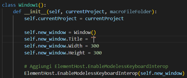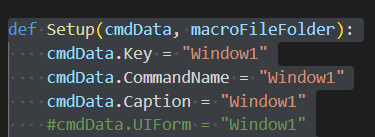 def Setup(cmdData, macroFileFolder): #cmdData.UIForm = "SCR_Inspect12dAttributes" # must be disableddef Execute(cmd, currentProject, macroFileFolder, parameters): form = ListProjectObjectsDialog(currentProject, macroFileFolder).ShowDialog() returnclass ListProjectObjectsDialog(Window): # this inherits from the WPF window control def __init__(self, currentProject, macroFileFolder): with StreamReader(macroFileFolder + r"\ListProjectObjects.xaml") as s: wpf.LoadComponent(self, s)