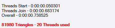 As you can see in the timing example below, the surface has over 80000 triangles. The 10 list locks in this example can be ignored. The point to compute for was always the same, so the result is always the same.