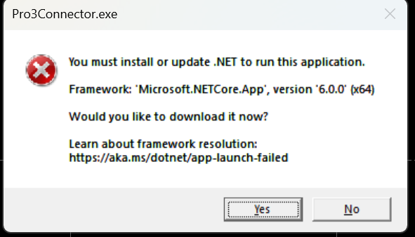 Microsoft has ceased updates to .NET 6 in November 2024. As a federal govt. employee .NET 6 deployed in software is not working and ceases functioning because .NET 6 is being blocked. Tested on two different computers, (both running TBC 2024.01 and 2024.1), and when launching the GIS connection Manager tool in the GIS Tab / Connection Group, we get the error below and TBC locks up entirely (must close TBC and restart).