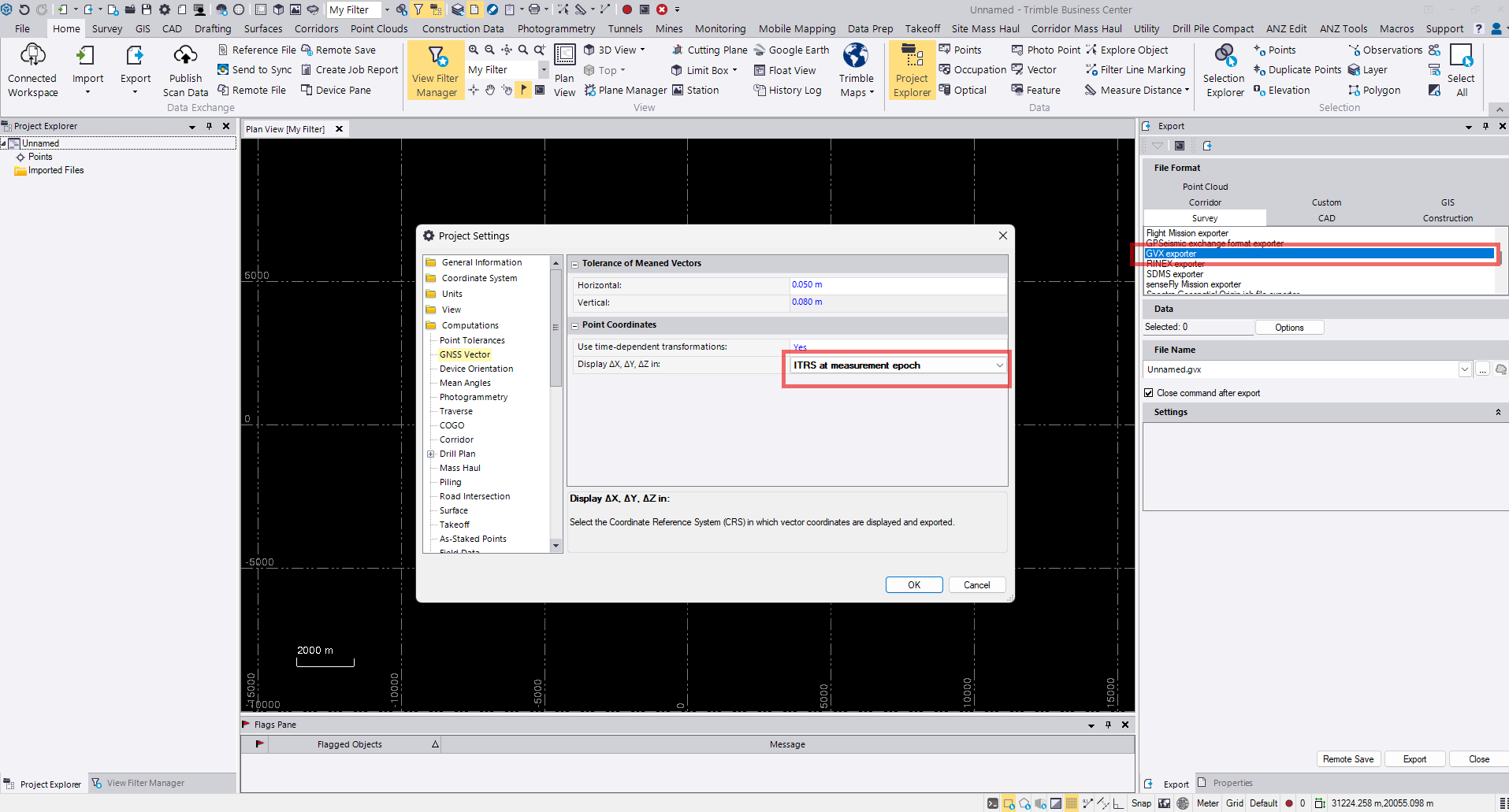 Alec - TBC should allow a user to export GVX files under Export - Survey - GVX exporter. I believe you will also want to change the Project Setting - Computation - GNSS Vector - Point coordinate - Display delta x, y, z, to ITRS at measurement epoch. This setting should have been made available in 2024.10.