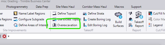 Alternatively, you can do the same thing by increasing the topsoil stripping thickness in the Define Topsoil Command for the area you are overexcavating. However, this mixes the overexc in with the topsoil which may or may not be what you need. I've used both options in the past.