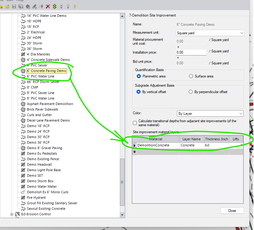 And if I add the structural fill as a 48" layer in the site improvement pavement subgrade, the overexcavation function starts at the bottom-most elevation of the site improvement and goes down 4-feet from there, over reporting the amount of overexcavation required. I was just hoping to find a trick to avoid having to run two different takeoff reports to get the numbers I need.