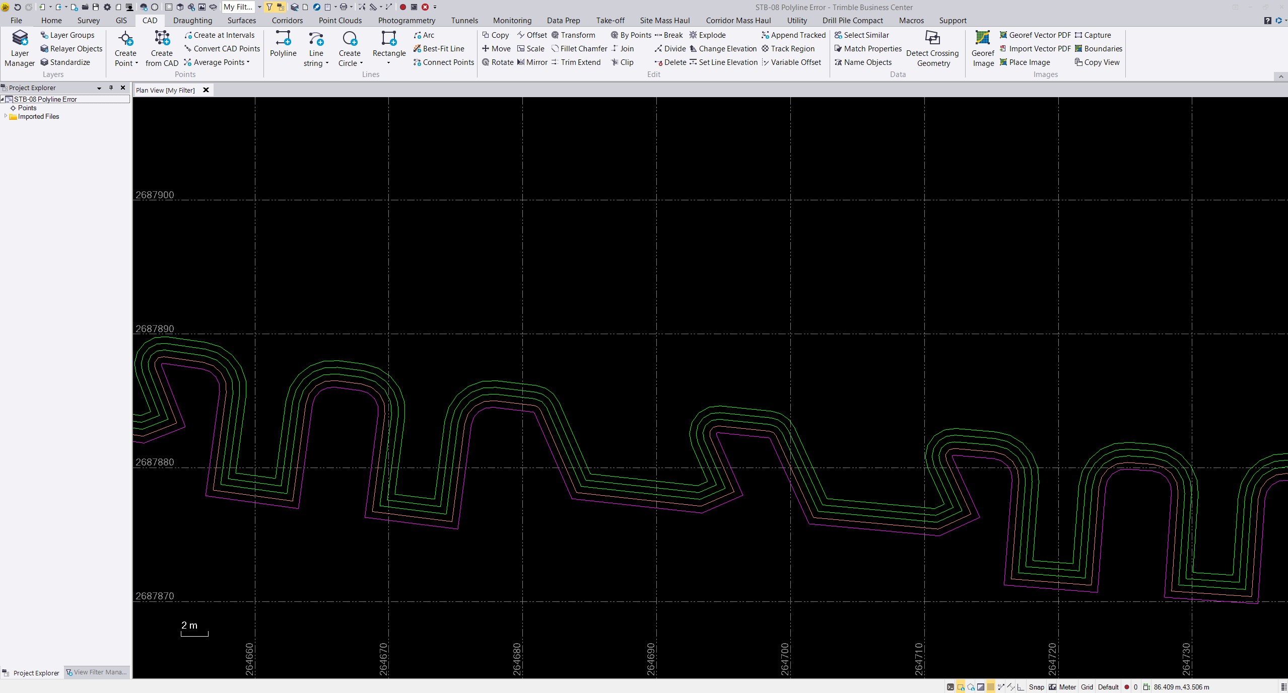 Attached PDF file gives the screen shots before and after offsetting the polyline.