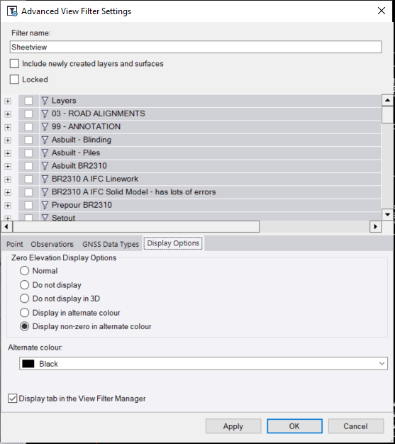 If you've got a similar setup you can try to go to the Advanced View Filter Settings for the Sheetview. Under Display Options set the following. It depends on your data having an elevation.