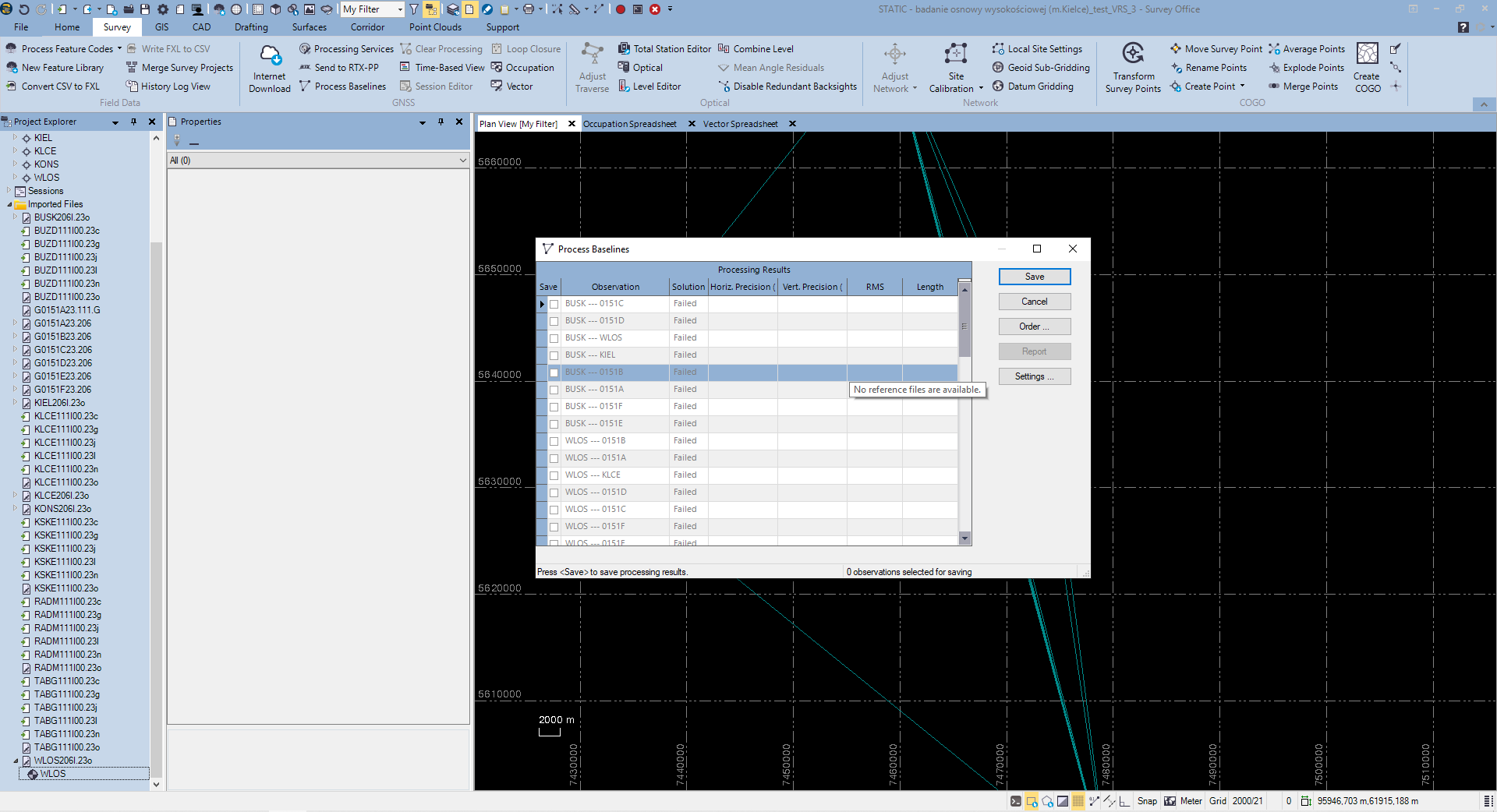 could you please help me with processing my GNSS static data? The problem occurs when I want to process baselines. It fails because "No reference files are available". What kind of reference files are these?